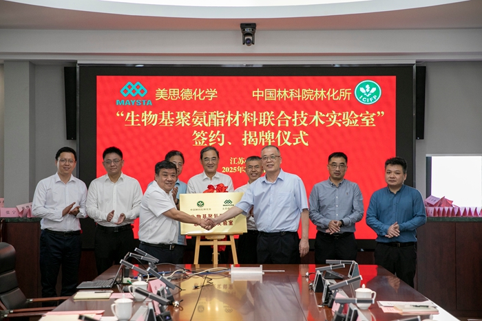 中化新網(wǎng)訊 8 月 26 日,江蘇美思德化學(xué)股份有限公司與中國林業(yè)科學(xué)研究院林產(chǎn)化學(xué)工業(yè)研究所舉行了生物基聚氨酯材料聯(lián)合技術(shù)實驗室揭牌儀式。...